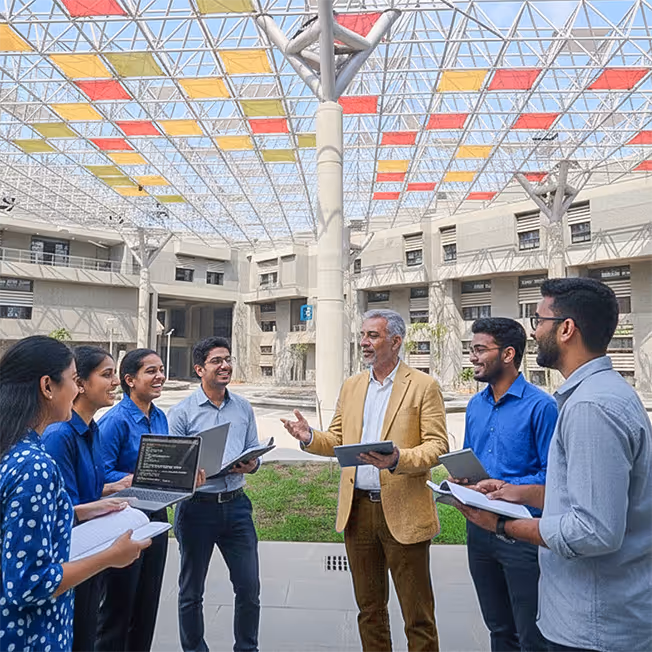 With modern classrooms, cutting-edge labs, and vibrant student culture, IITGN provides a modern IIT experience where ideas move seamlessly from whiteboards to real-world prototypes.